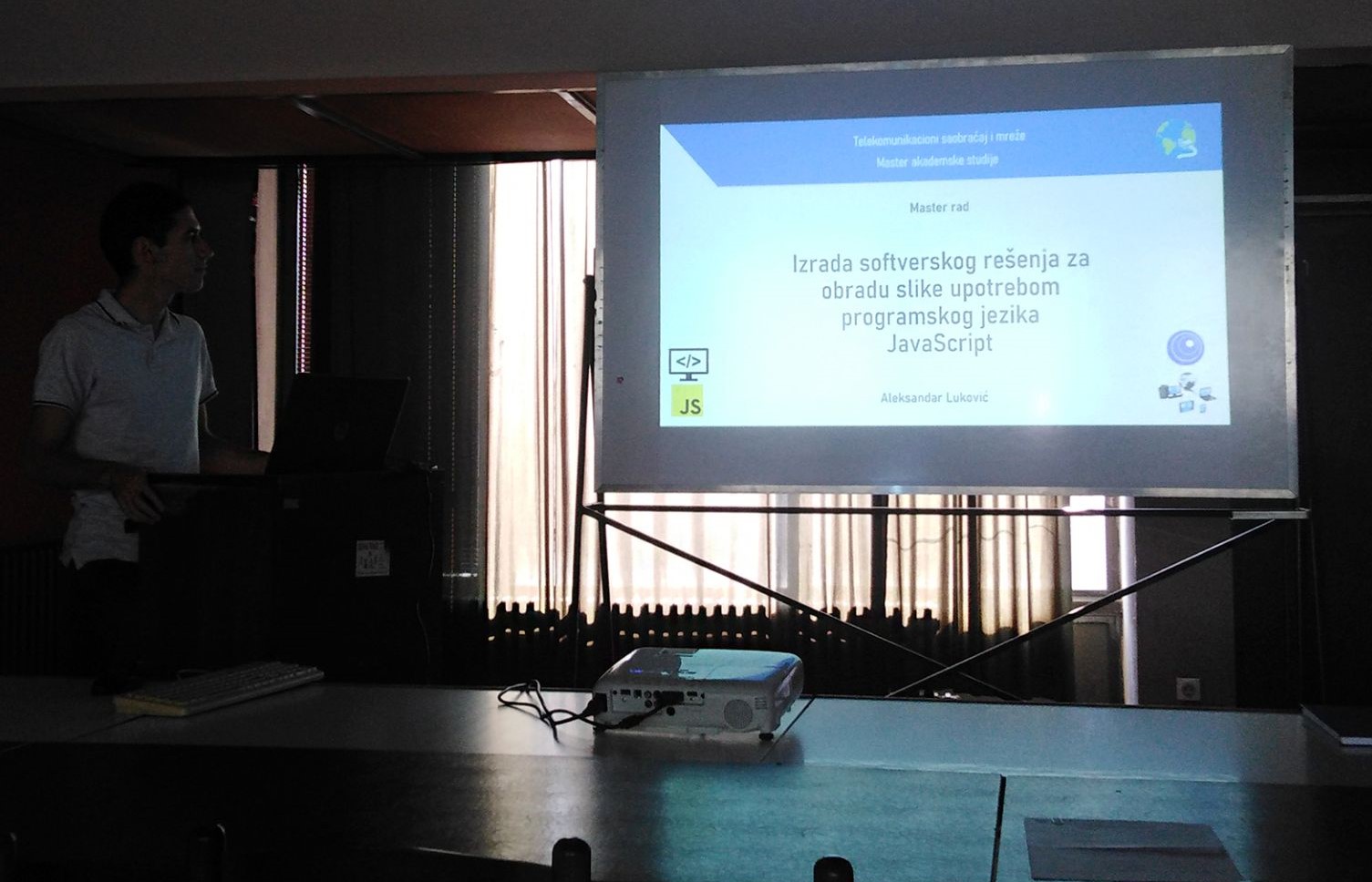 Odbrana master rada pod nazivom Izrada softverskog rešenja za obradu slike upotrebom programskog jezika JavaScript.
